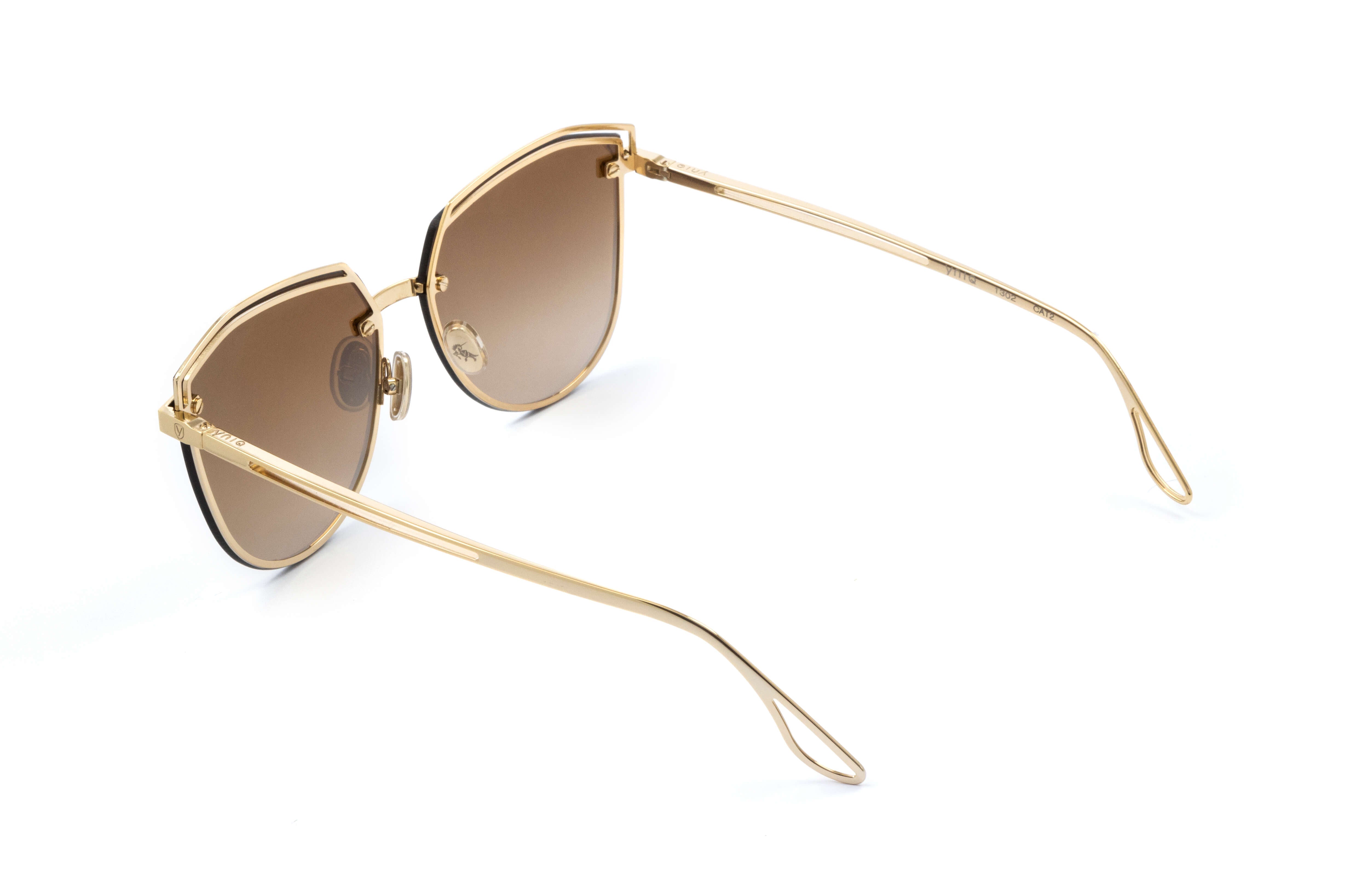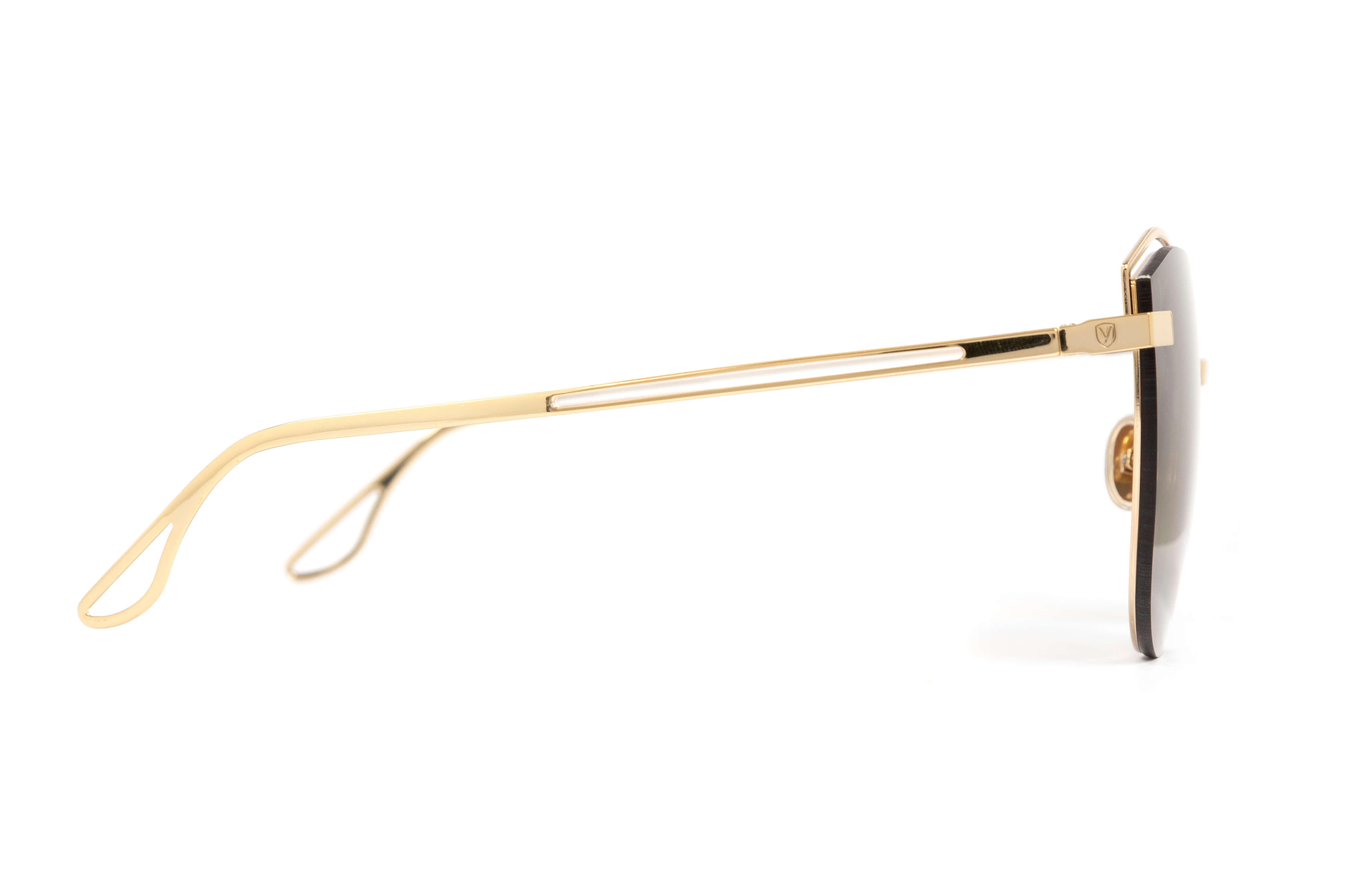 Designed in partnership with Olympian Lindsey Vonn, Yniq artisans handcrafted each piece, combining their expertise as they redefine eyewear as wearable pieces of art. Displayed here in Gold with a Gold lens, the LV LE One is also available in Rose Gold and Black.
