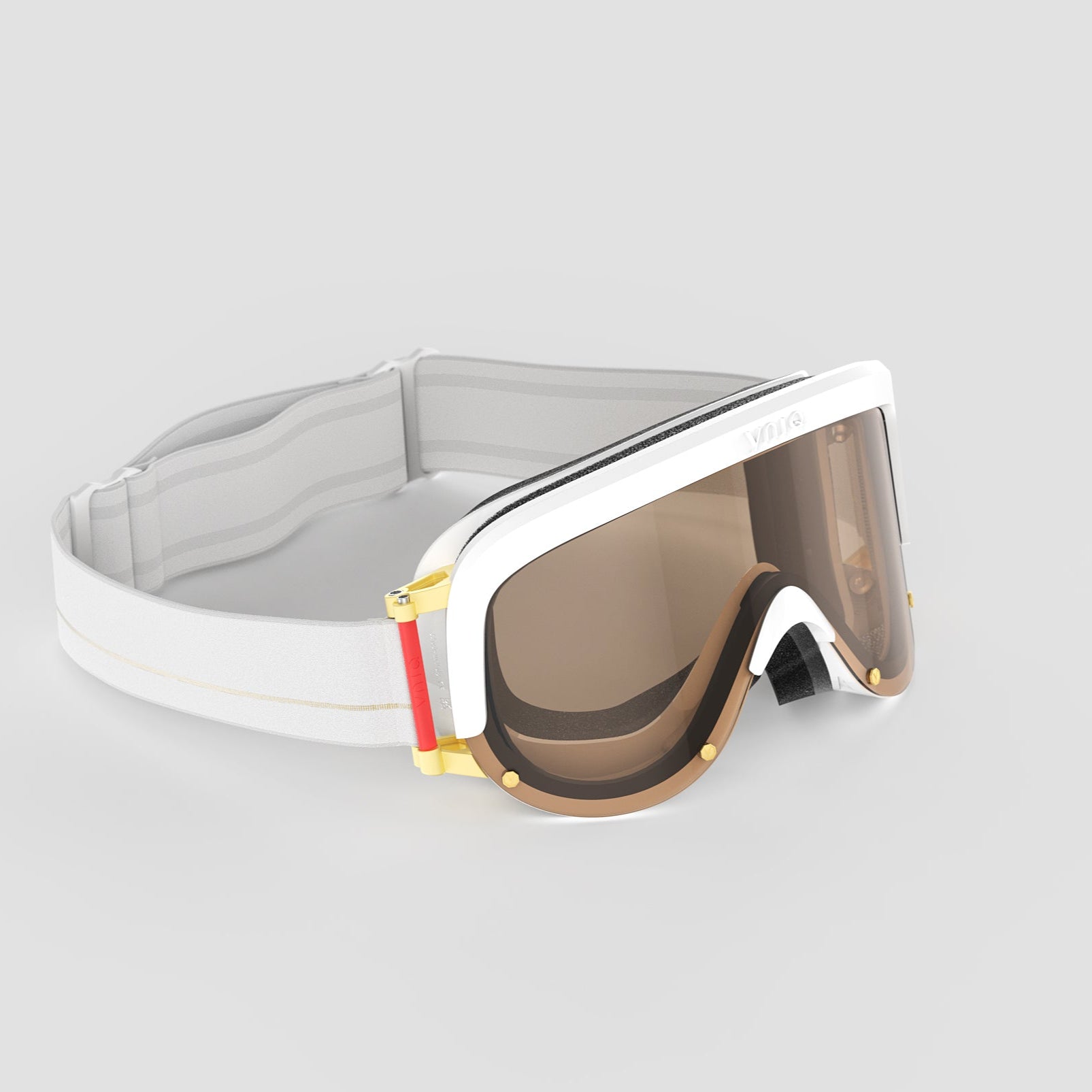 The Model One ski goggle borrows inspiration from vintage motorcars where the culmination of performance, quality materials and artistry produce an extraordinary ski goggle. With our tri-lens PVT technology, you experience expanded vision, empowering you to redefine limits and transcend boundaries. The mountain experience is elevated with bespoke metal hardware that seamlessly connects the strap mechanism resulting in the perfect fit. You are free to embrace the slopes with clarity, style, and freedom.
